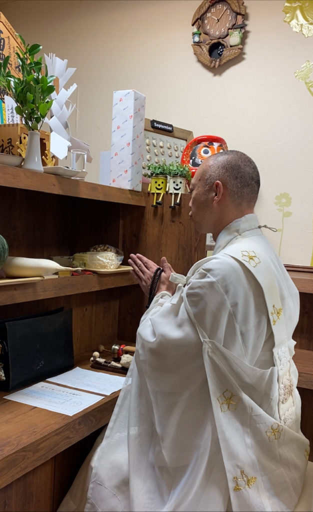 年に1回、お経を吹き込み、商売繁盛を祈ります。
