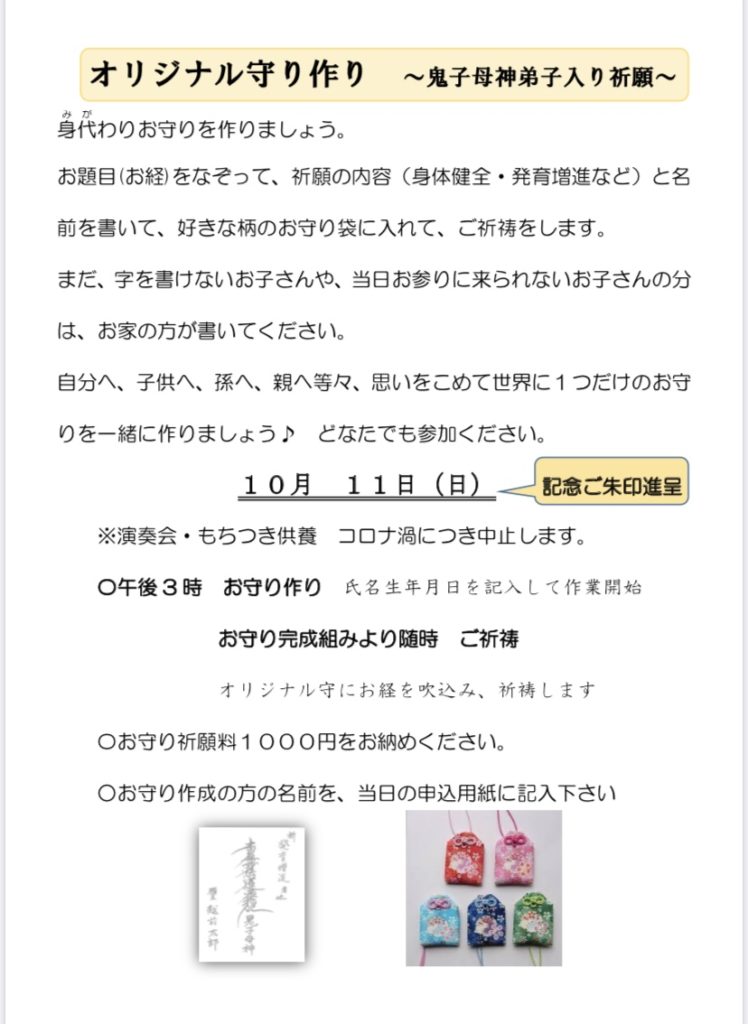 お守り完成組みから随時 発育祈願
