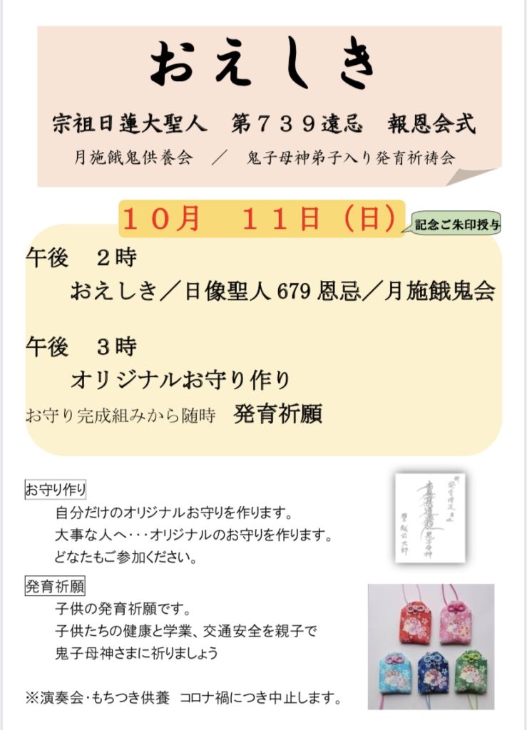 午後2時~ おえしき・日蓮聖人、日像聖人報恩会式・月施餓鬼