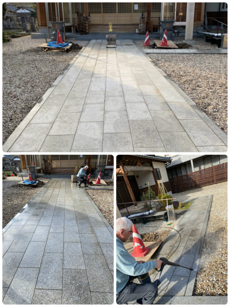 黒く汚れていた石畳が白くなってとっても気持ちが良いです。