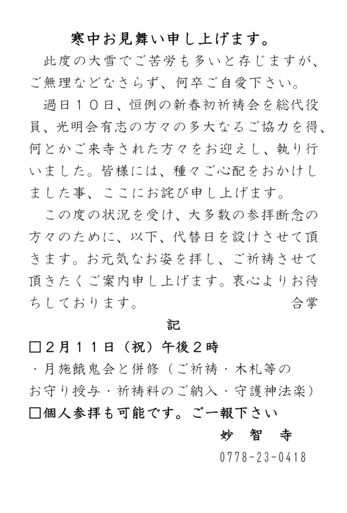 参拝したかったのに来られなかった方のために、代替日を設けました。