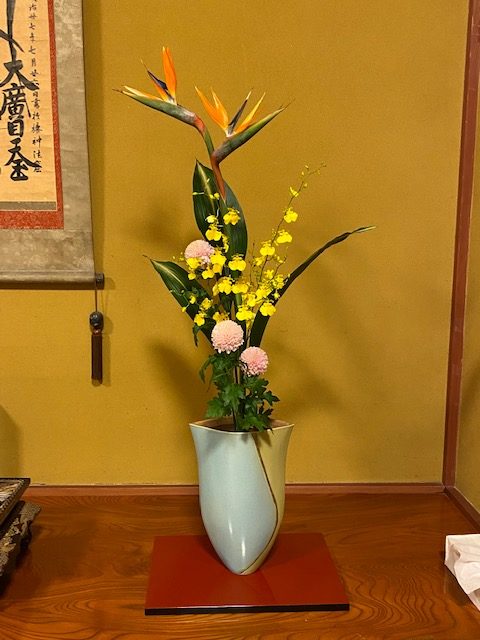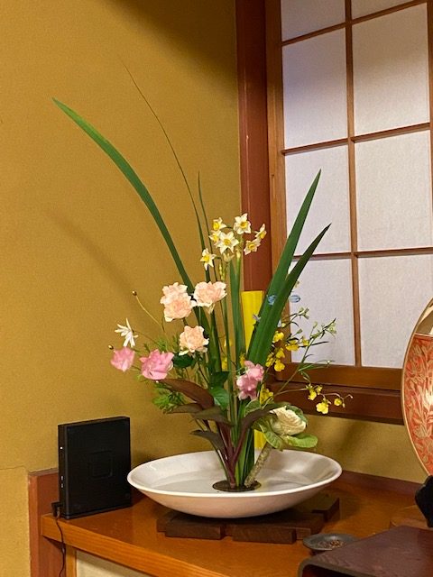 お正月華とはガラリと変わり、春らしいお華でちよっとだけ春を先取りして、お手伝い寺院の方と、参拝者の方をお迎えしました。