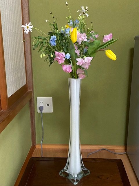 華材・・・チューリップ黄、マーガレット、ミニバラ、スイトピー、