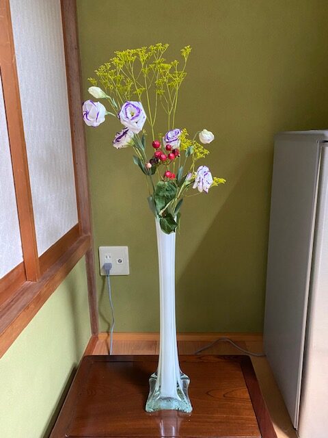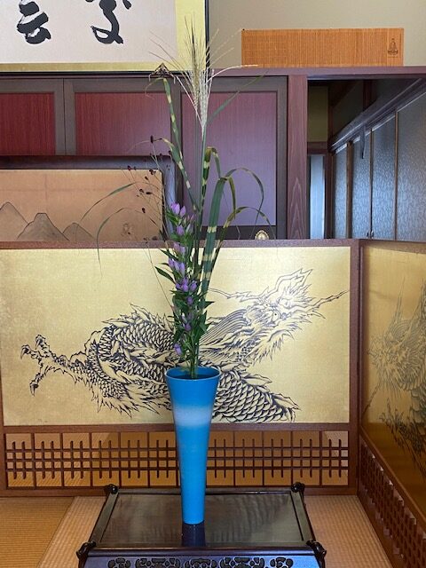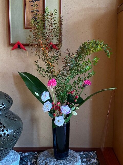 この日も30度超えの暑い日でしたが、玄関のお華は秋をイメージした作品。