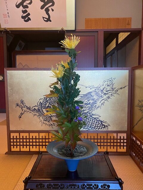 参拝団の方々をお迎えするため、玄関と床の間にお華を生けて頂きました。