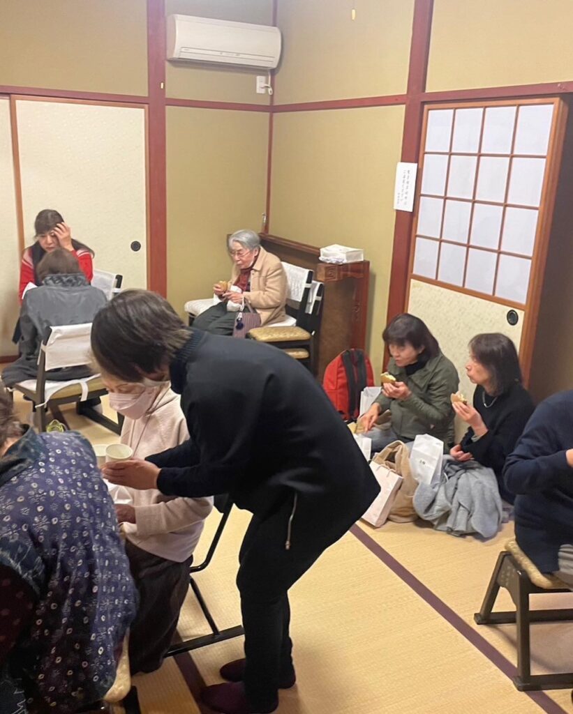 オリジナル御守り作りの前に、福井名物三六焼きをご供養させて頂き、皆さんに食べていただきました。キッチンカーでお寺まで来ていただき、焼きたてを食べていただきます。皆さんにとても喜ばれました。