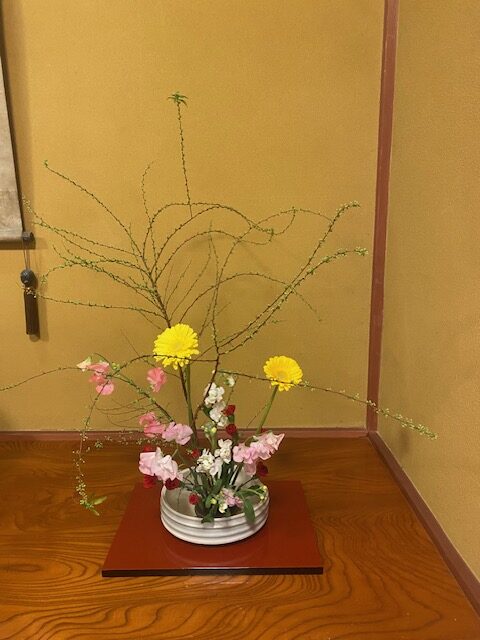 生け花は奥が深いですね。華材は同じでも花器や置く場所でいろんな生け方があり、見え方がちがったりと不思議です。