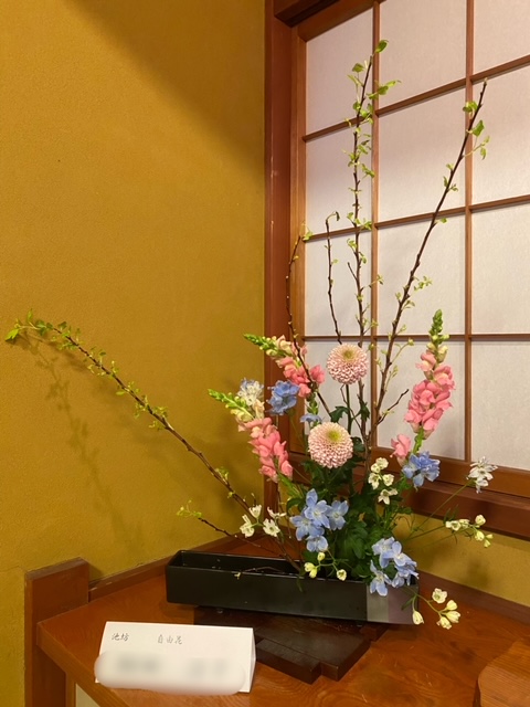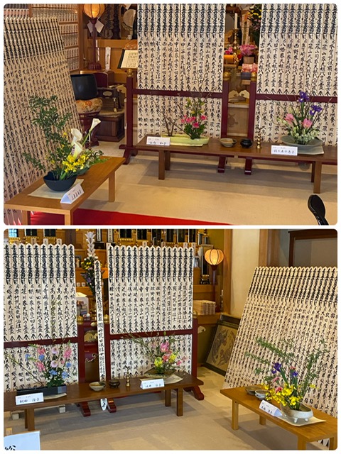 今回は6名の方々に本堂、2名の方に玄関に展示をして頂き、本堂はとても華やかに飾られました。