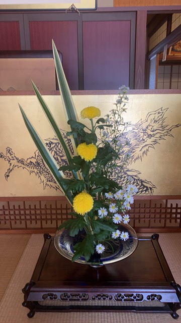 今回は、2名ずつ同じ花材を使って生けて頂きましたが、花器や生ける場所が違うだけで、花材も違ってみえて不思議でした。