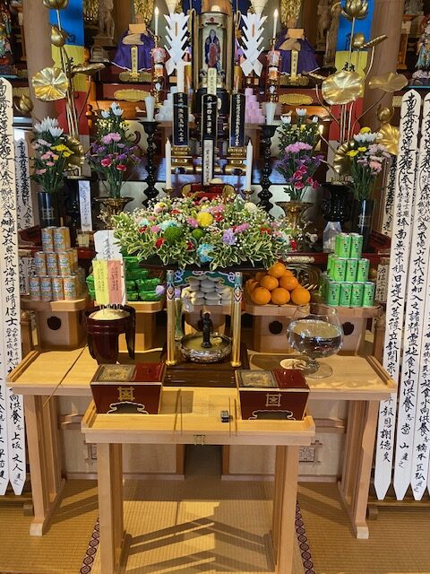 妙智寺の千部会は花祭りも兼ねているので、花御堂を飾ります。