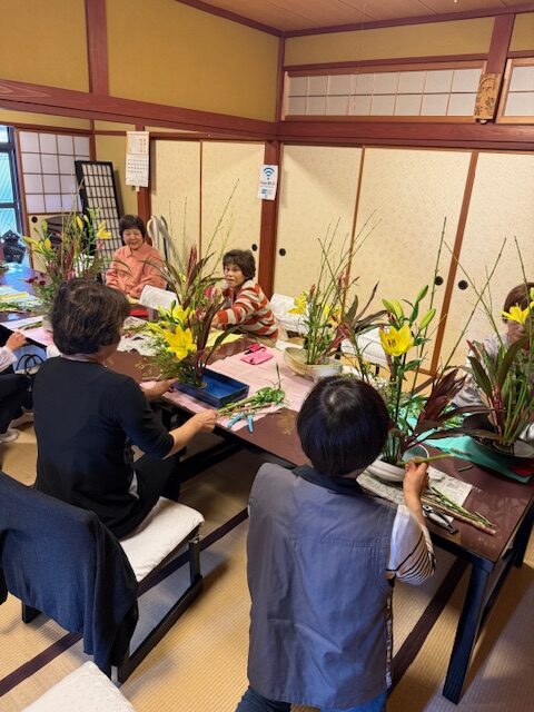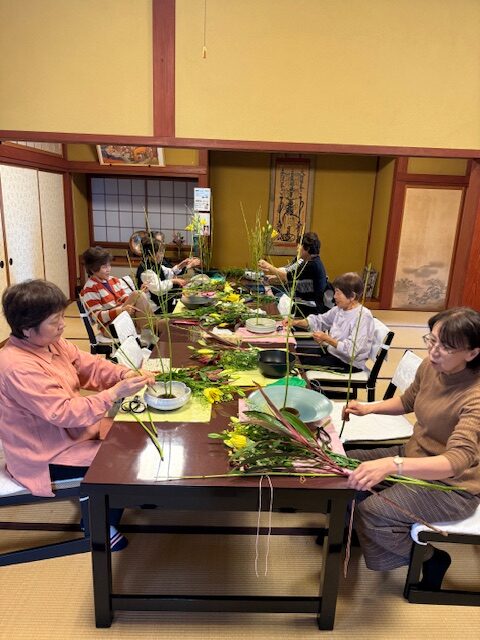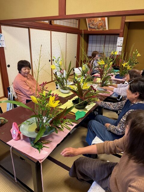 花器や飾る場所で生け方や枝や花の長さが変わり、一人一人違った個性豊かな作品が仕上がっていました。