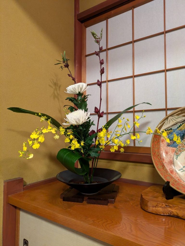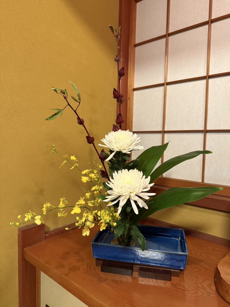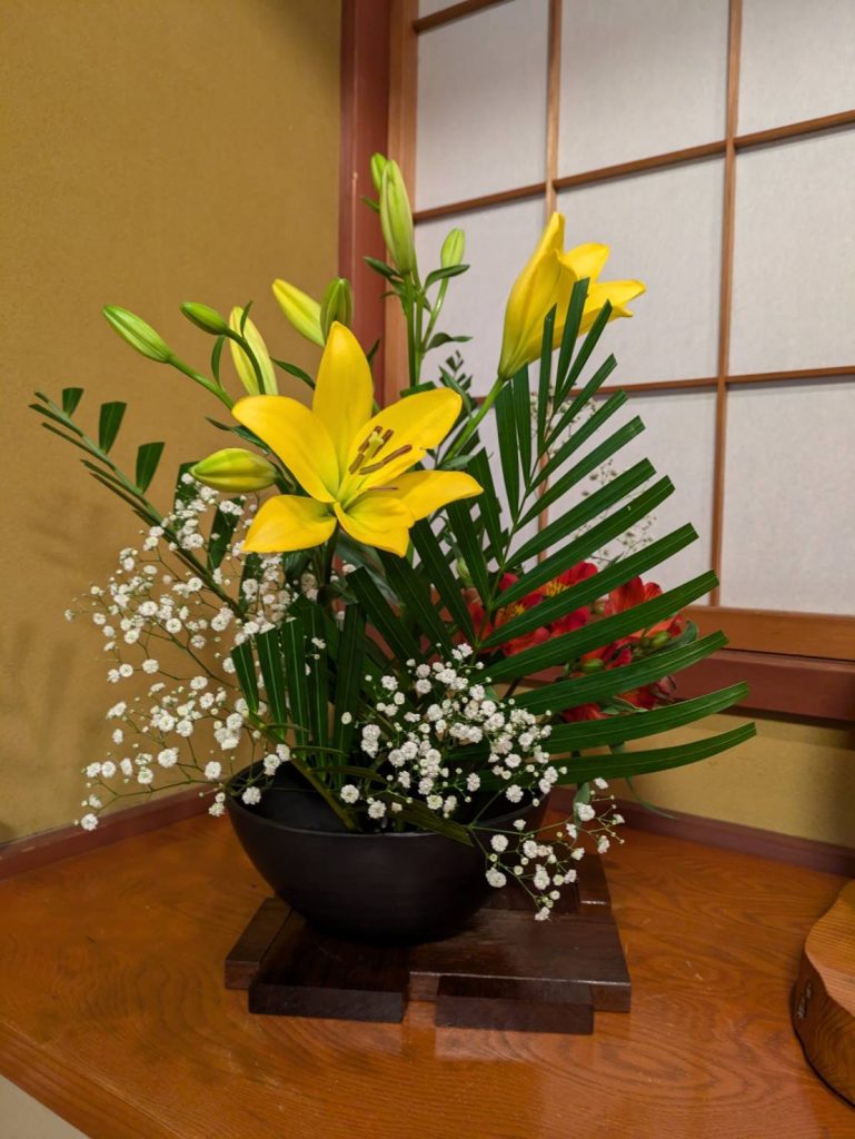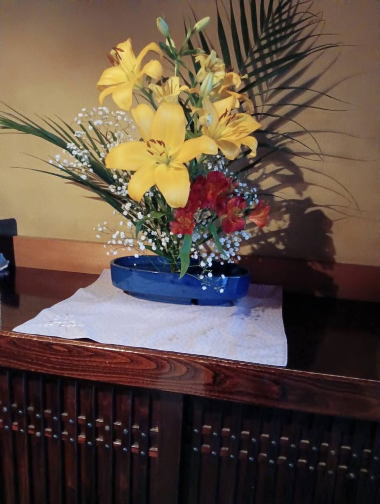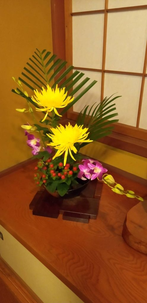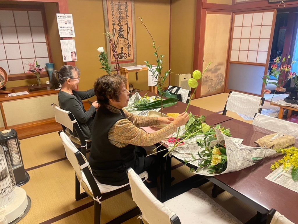 完成した作品は、本堂に4名・大座敷に2名飾って頂き、法要に花を添えて頂きました。