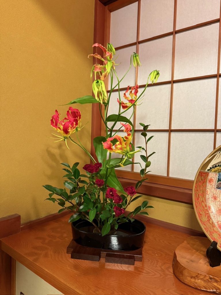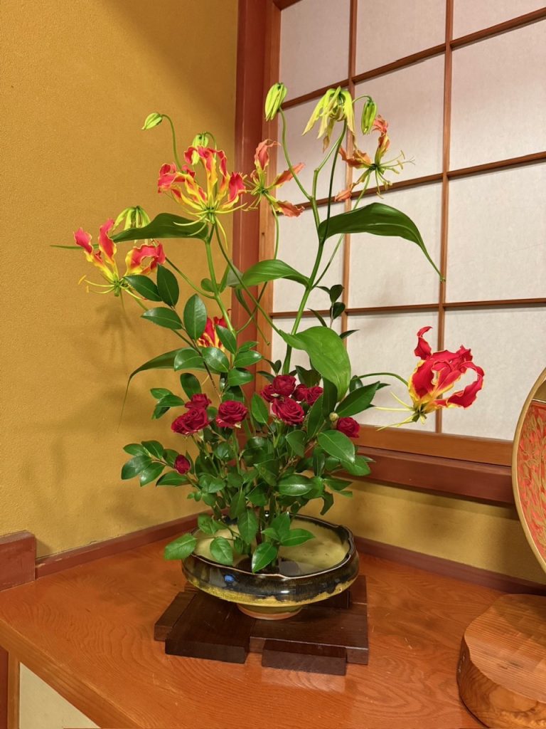 花材・・・グロリオサ、スプレーバラ、サザンカ