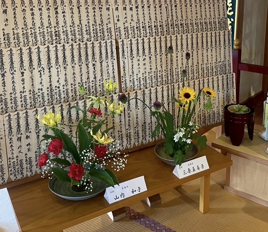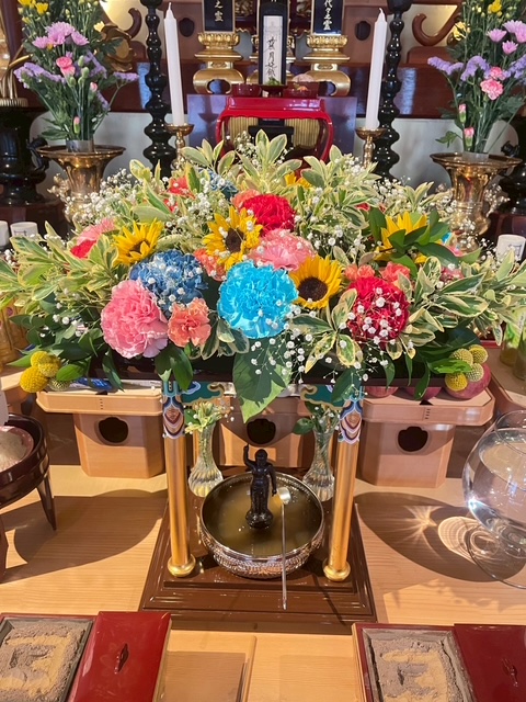 一人ひとり花材が違うので完成した作品は色とりどりで、ご宝前を華やかにして頂けました。
