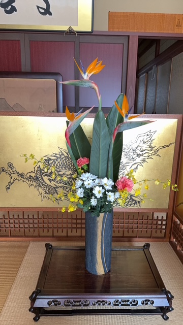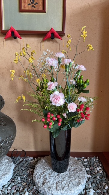 今回は2日の「おえしき」法要に展示をして頂くお花を生けて頂きました。