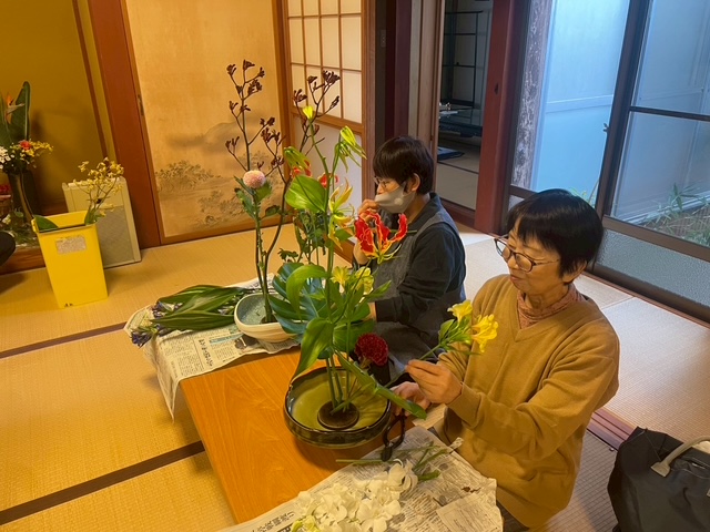 皆さん、難しい花材でもちゃちとっと生けていました。