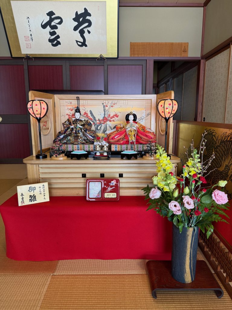 節分👹も終わり妙智寺の玄関には、お雛様を飾りました。