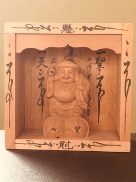 妙智寺の大黒さまを『親大黒』として、各家には『子大黒』として授与。枡(ます)に入れて各家にお祀りし、「ますます」の開運を授かる。